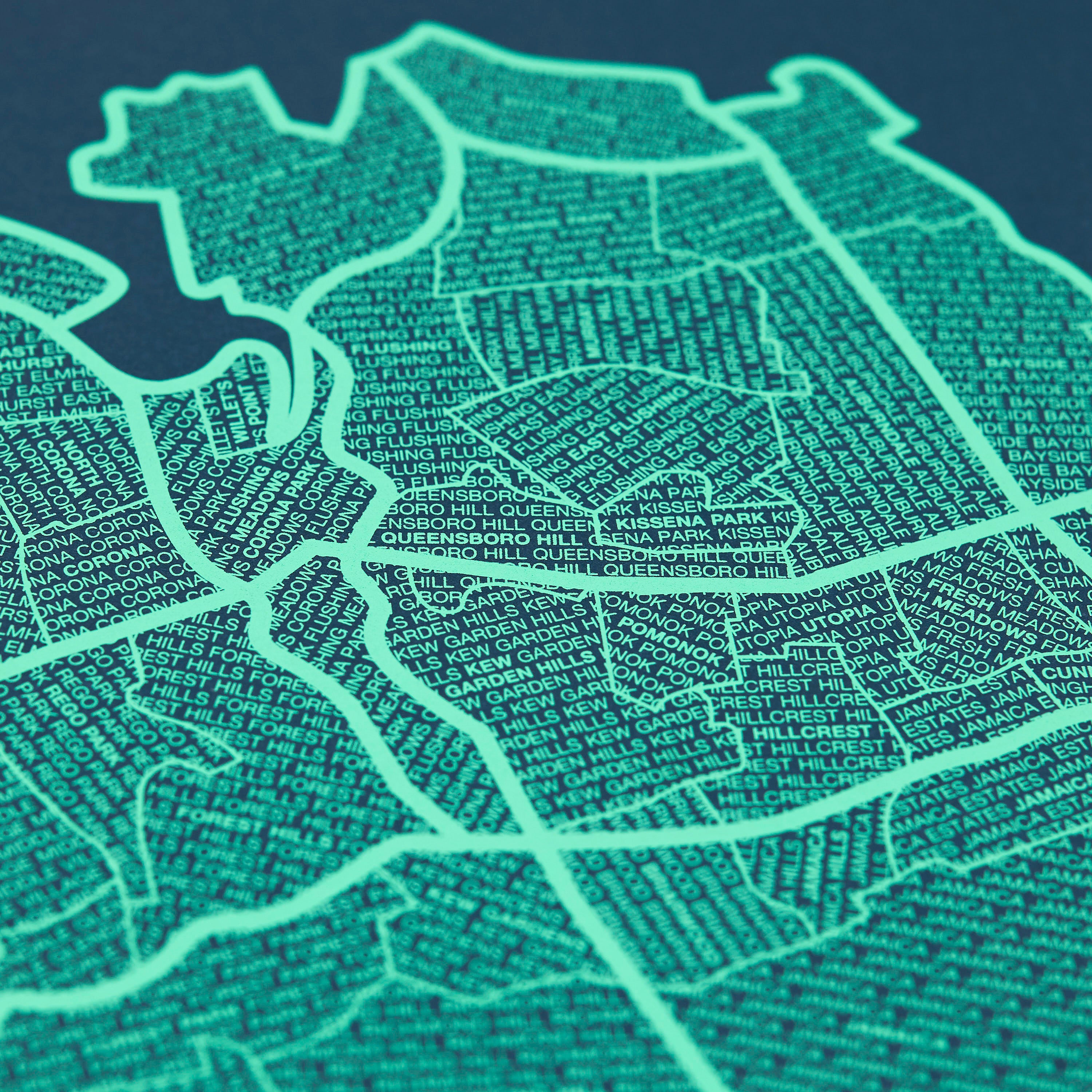 We hand-print each map on lux heavyweight paper with rich, matte ink.